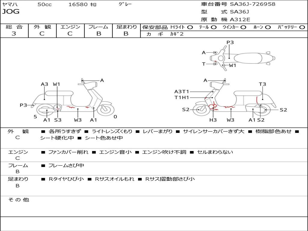 | Номер рамы / VIN | SA36J-726958 |