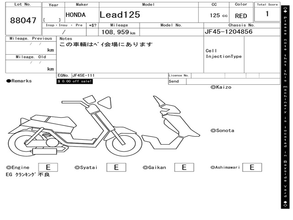 | Номер рамы / VIN | JF45-1204856 |