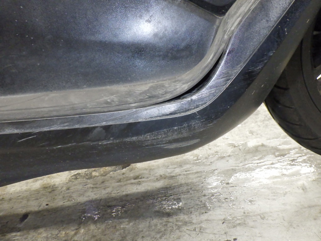 | снизу | царапины <много>, частичная подкраска, трещины |