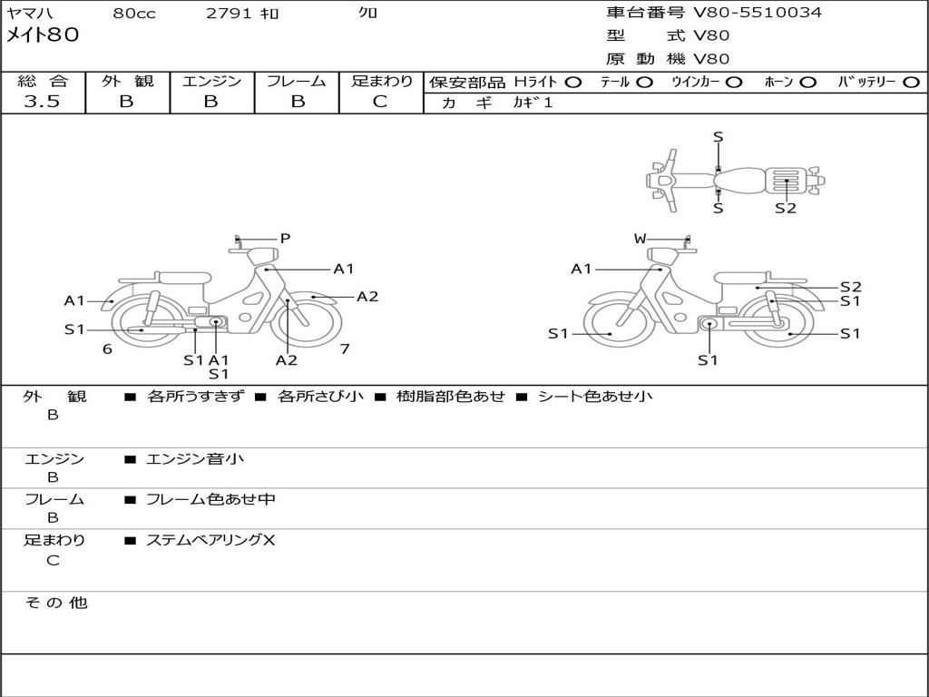 | Номер рамы / VIN | V80-5510034 |