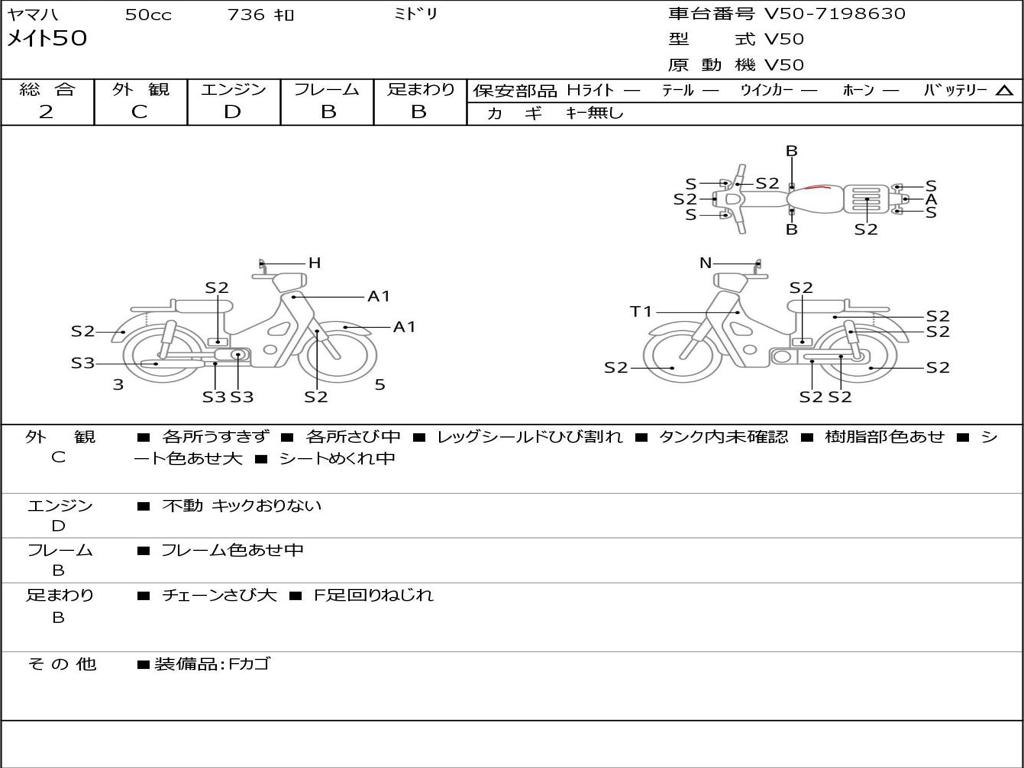 | Номер рамы / VIN | V50-7198630 |