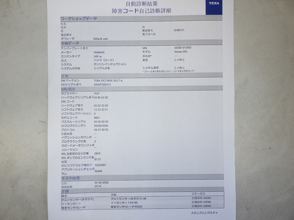 | Номер рамы / VIN | SED8J-012602 |