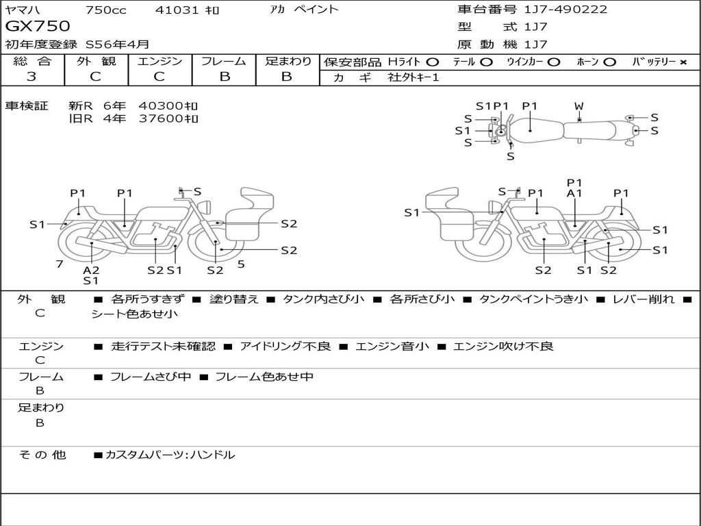 | Номер рамы / VIN | 1J7-490222 |
