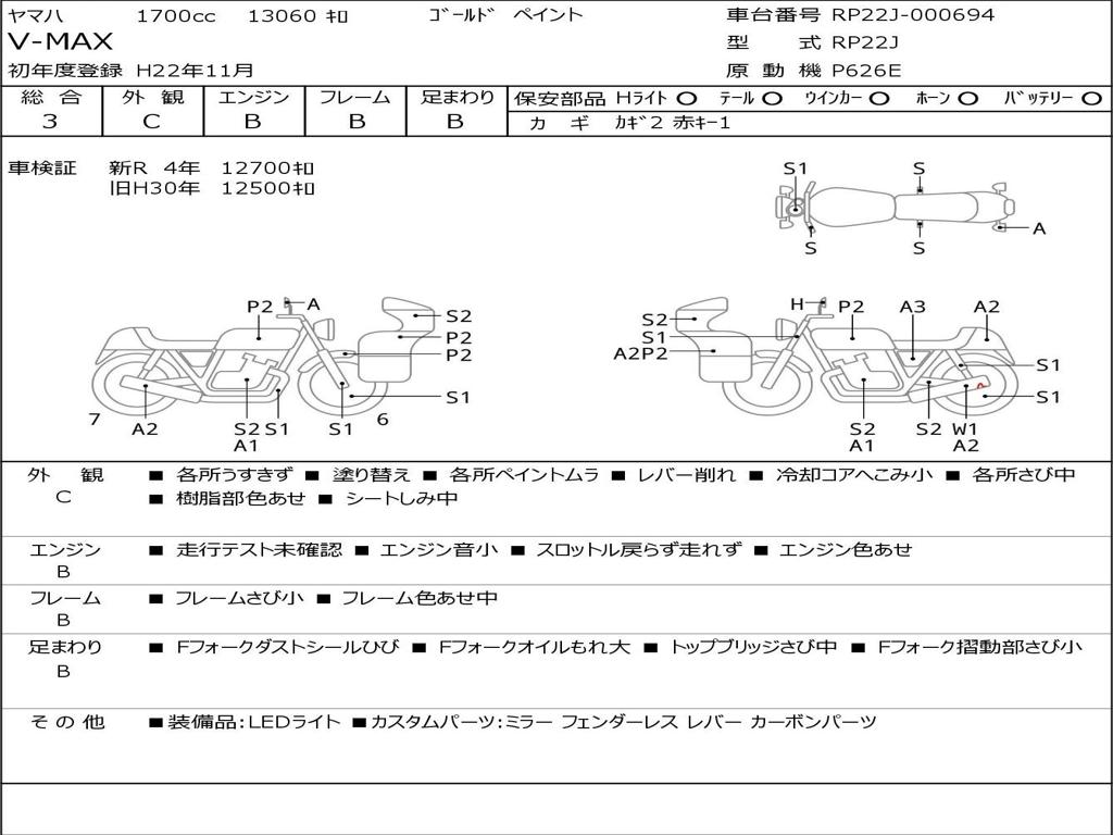 | Номер рамы / VIN | RP22J-000694 |