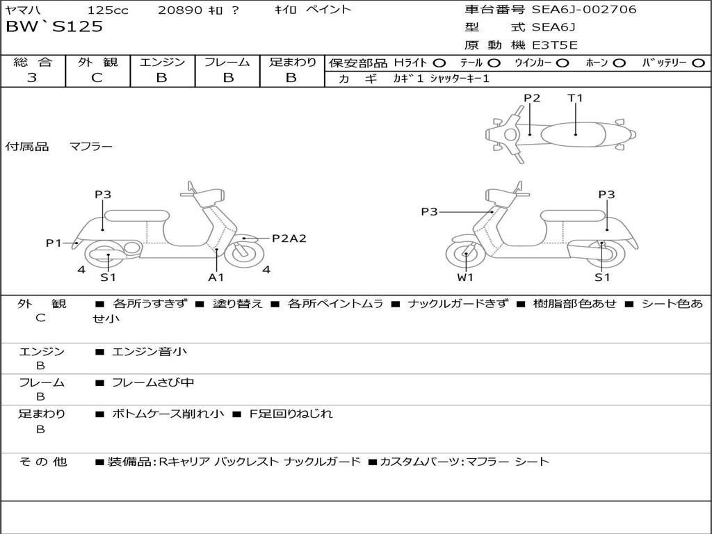 | Номер рамы / VIN | SEA6J-002706 |