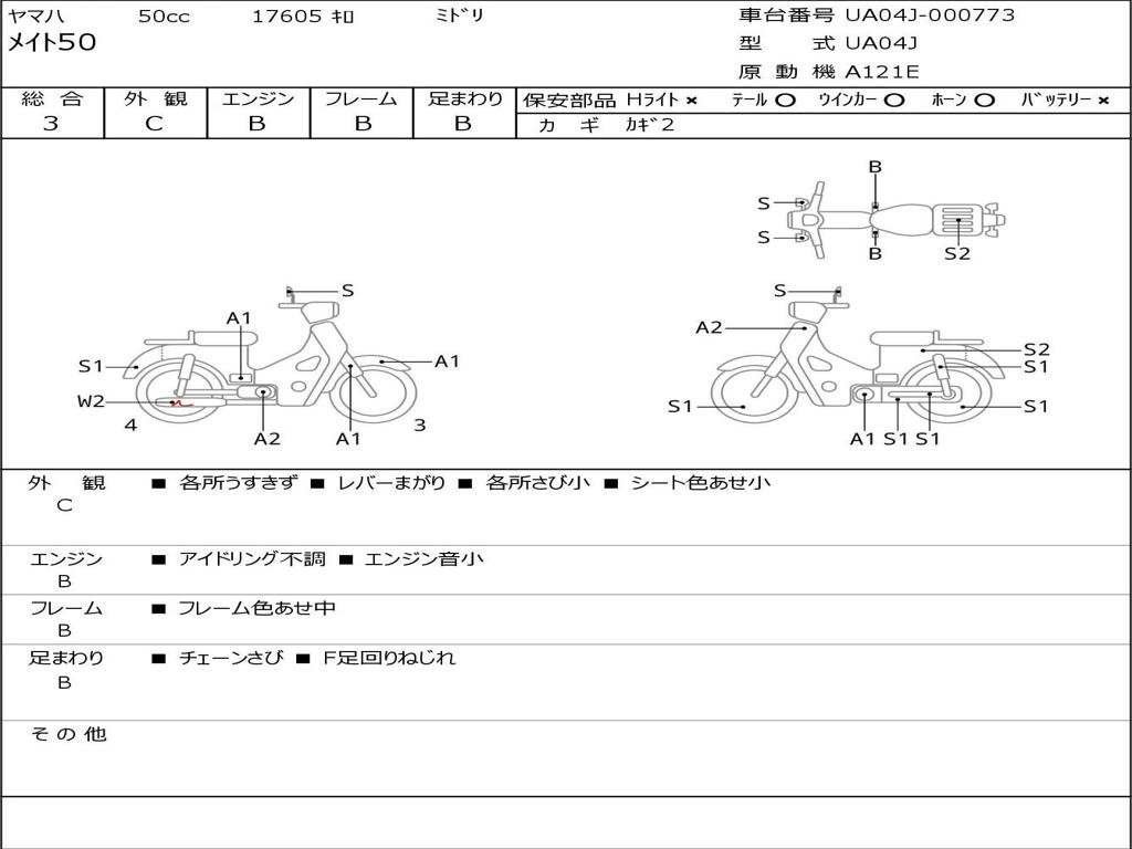 | Номер рамы / VIN | UA04J-000773 |