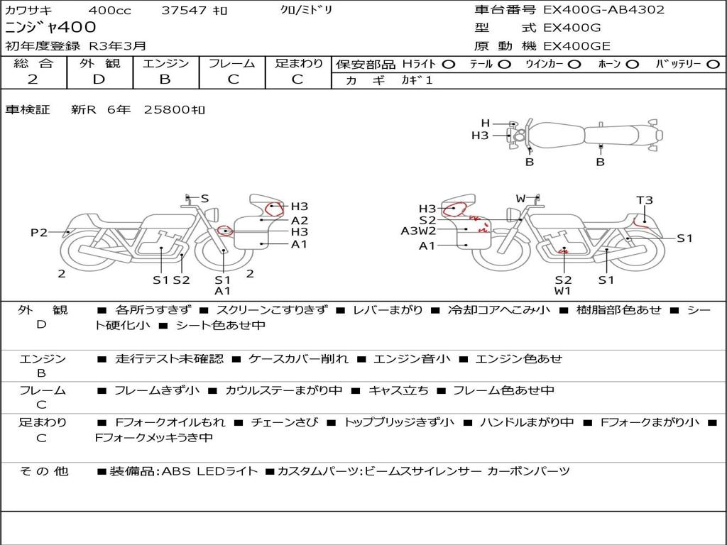 | Номер рамы / VIN | EX400G-AB4302 |