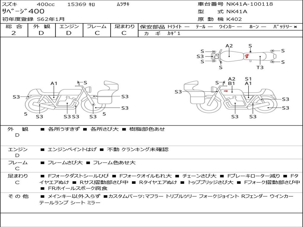 | Номер рамы / VIN | NK41A-100118 |