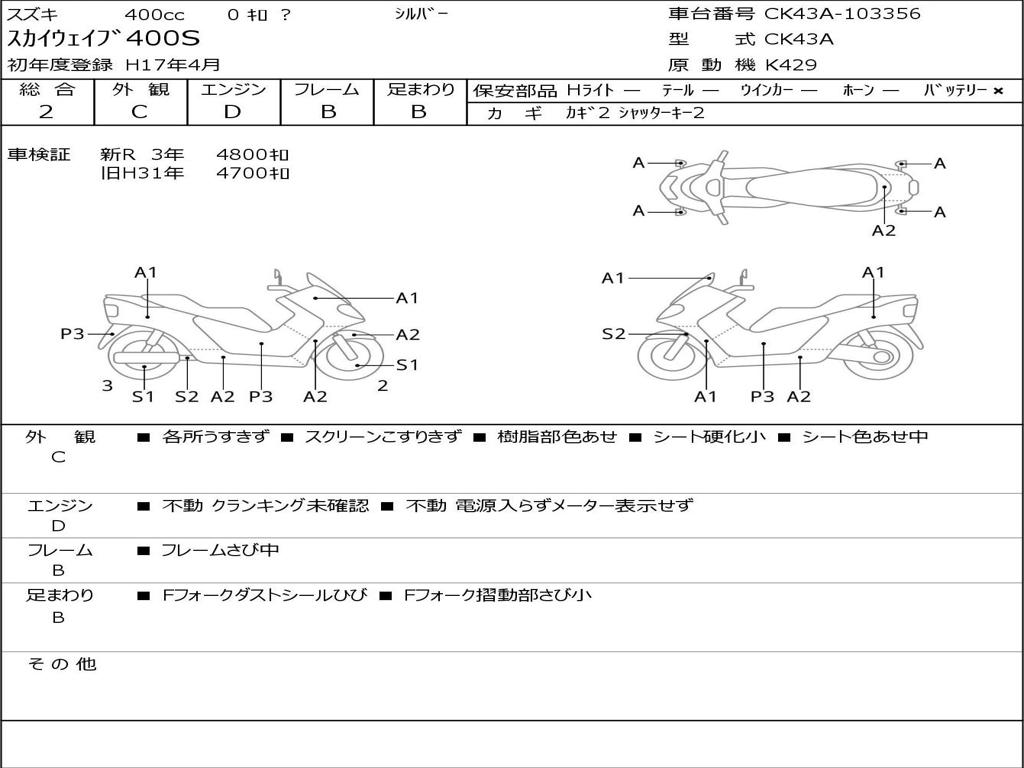 | Номер рамы / VIN | CK43A-103356 |
