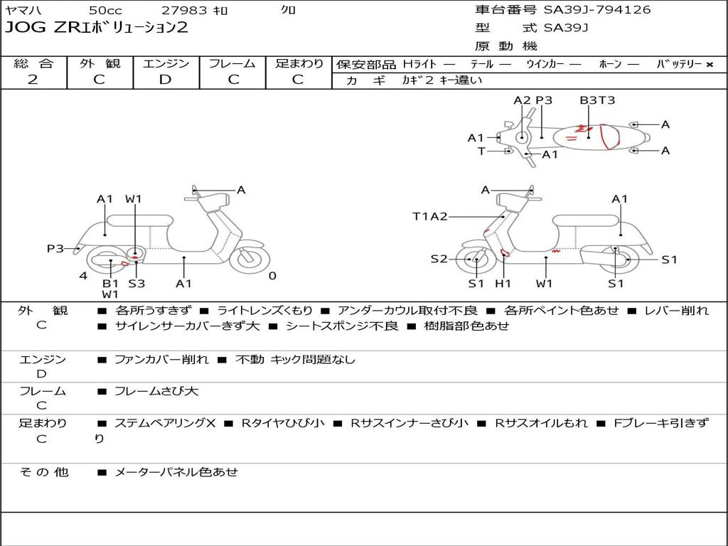 | Номер рамы / VIN | SA39J-794126 |