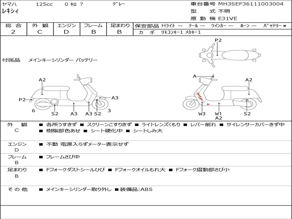 | Номер рамы / VIN | MH3SEF36111003004 |