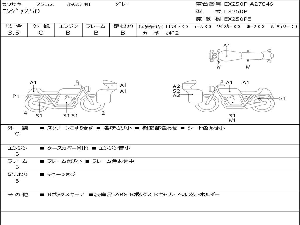 | Номер рамы / VIN | EX250P-A27846 |