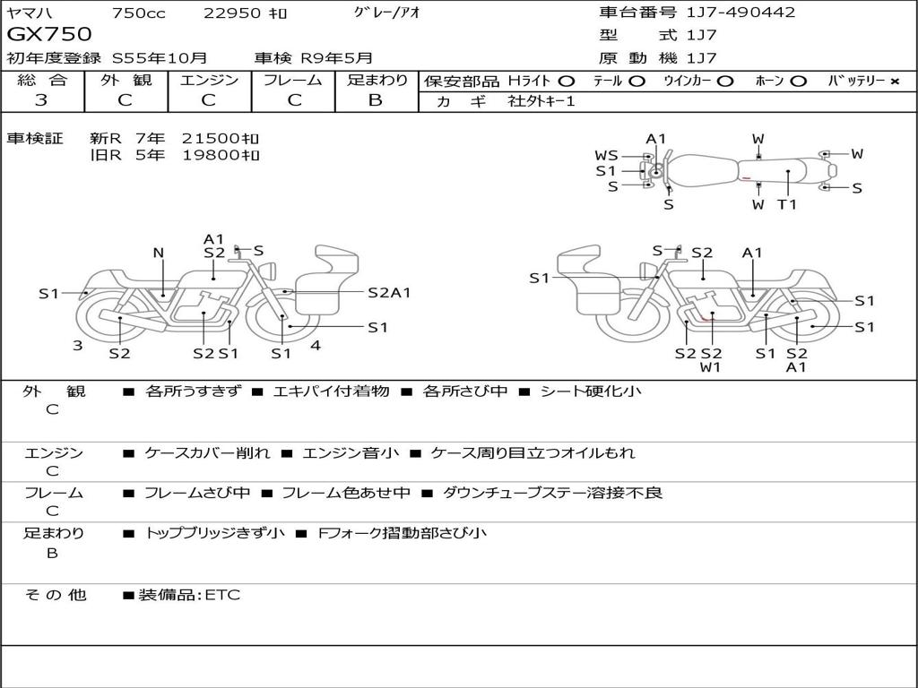 | Номер рамы / VIN | 1J7-490442 |