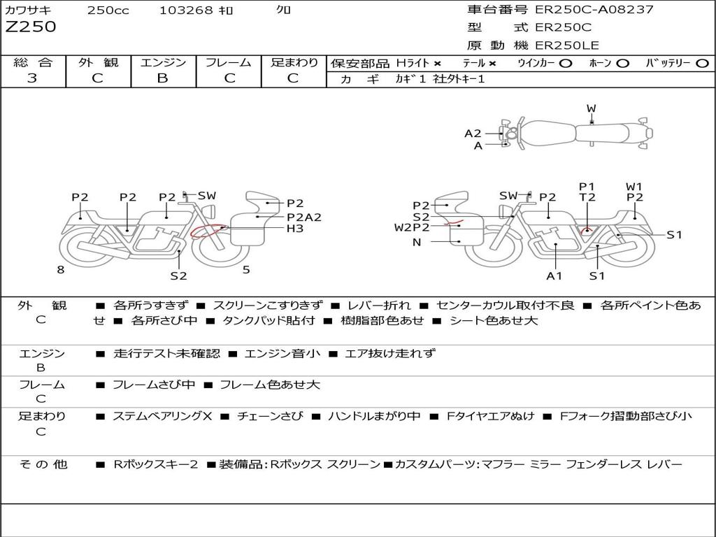 | Номер рамы / VIN | ER250C-A08237 |