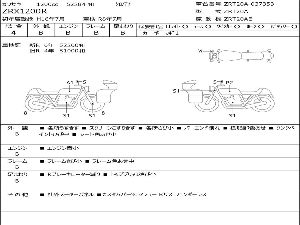 | Номер рамы / VIN | ZRT20A-037353 |