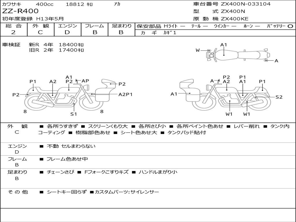 | Номер рамы / VIN | ZX400N-033104 |