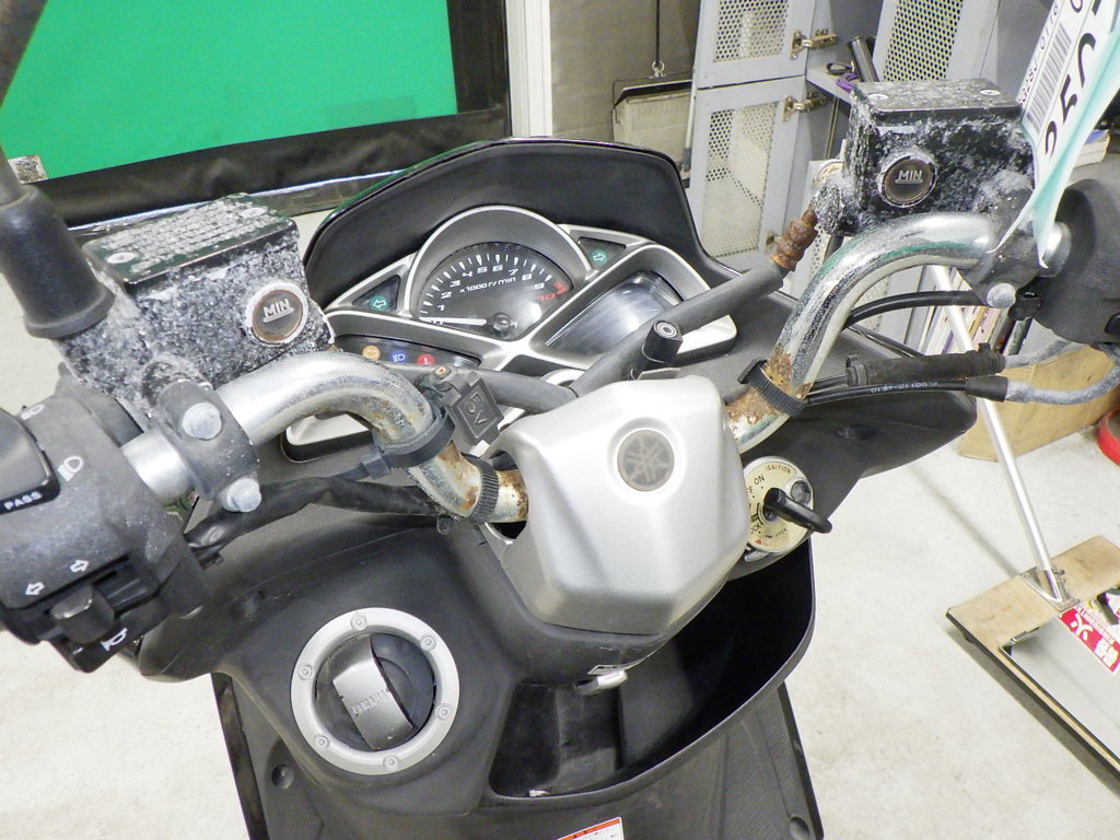 | внешняя часть вилки | rust paint, вздутие <средне>, потек масла |