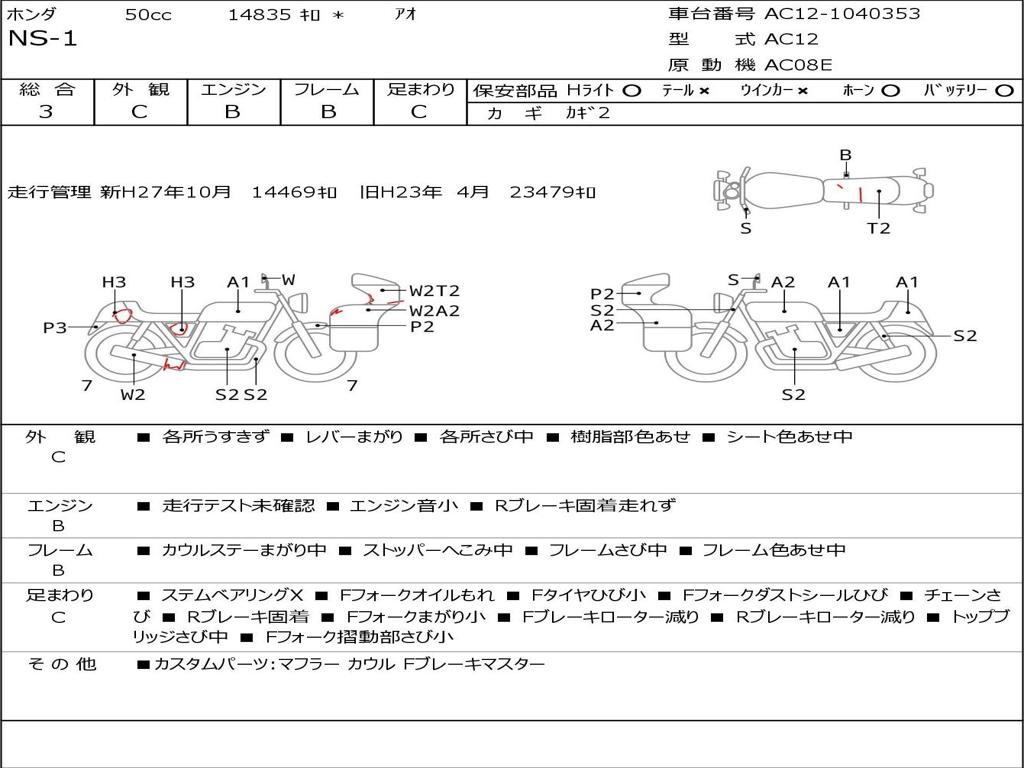 | Номер рамы / VIN | AC12-1040353 |