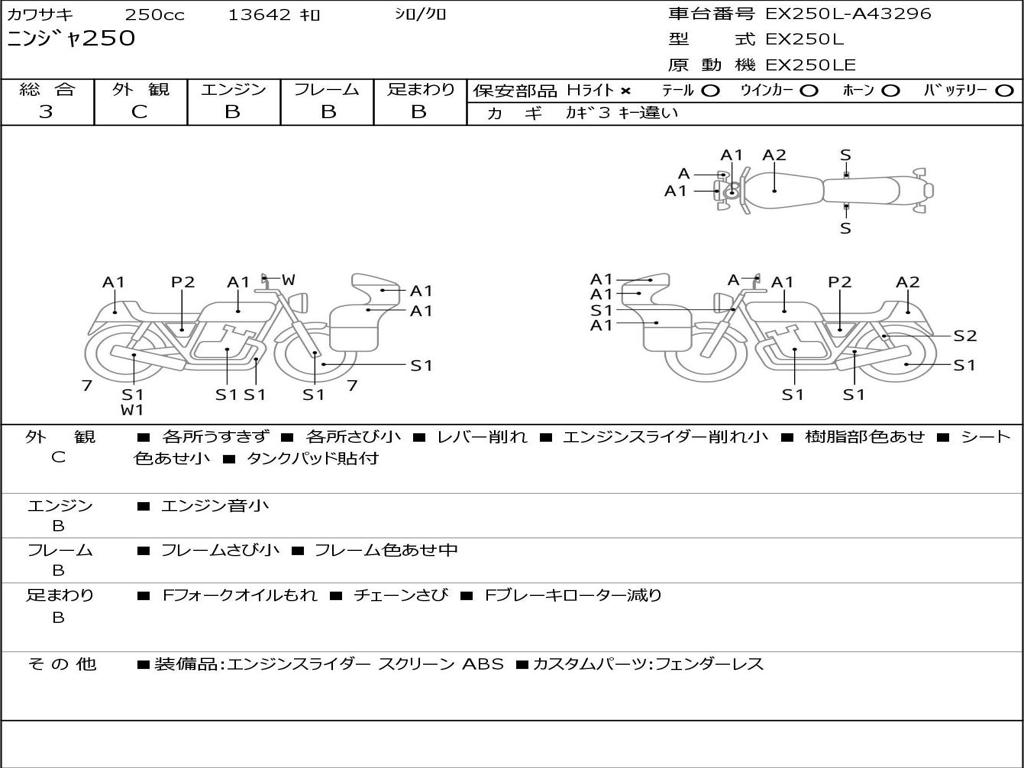 | Номер рамы / VIN | EX250L-A43296 |