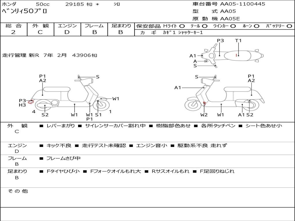 | Номер рамы / VIN | AA05-1100445 |