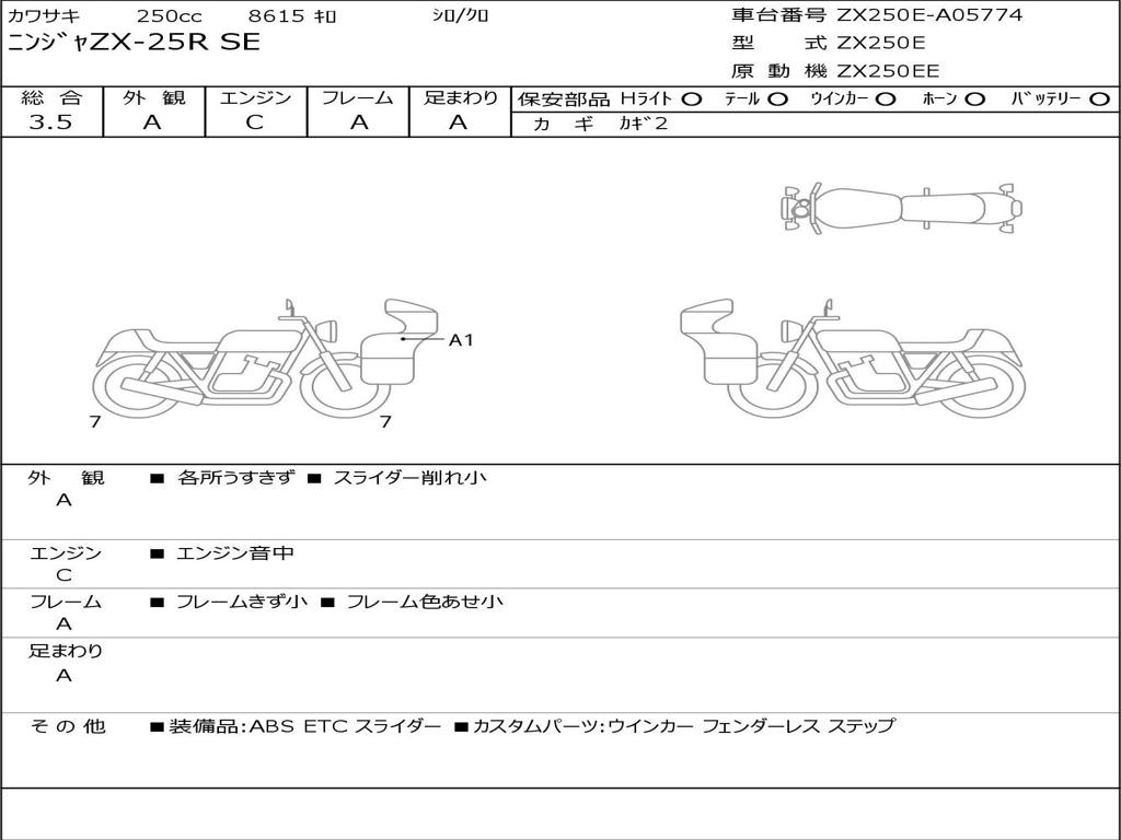 | Номер рамы / VIN | ZX250E-A05774 |