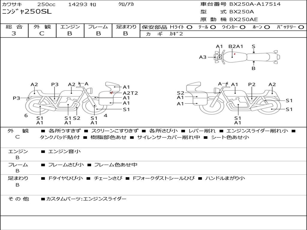 | Номер рамы / VIN | BX250A-A17514 |