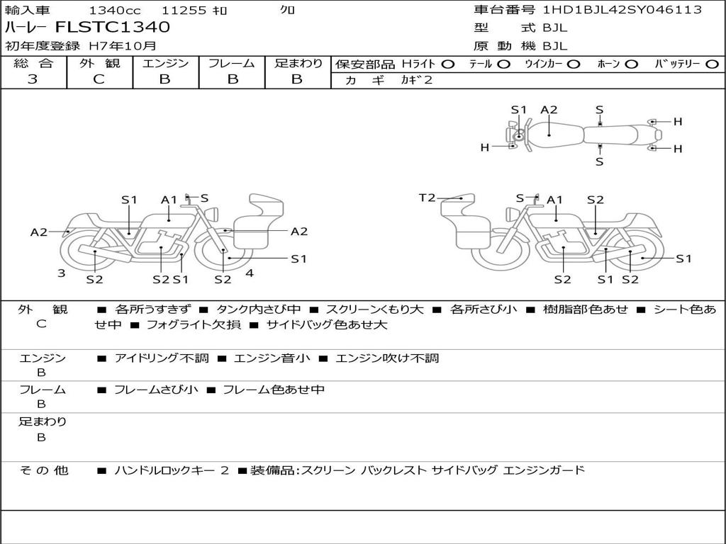 | Номер рамы / VIN | 1HD1BJL42SY046113 |