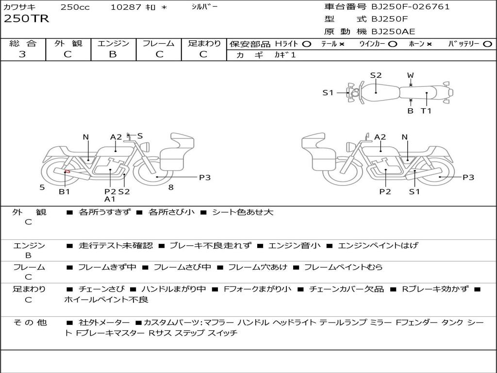 | Номер рамы / VIN | BJ250F-026761 |