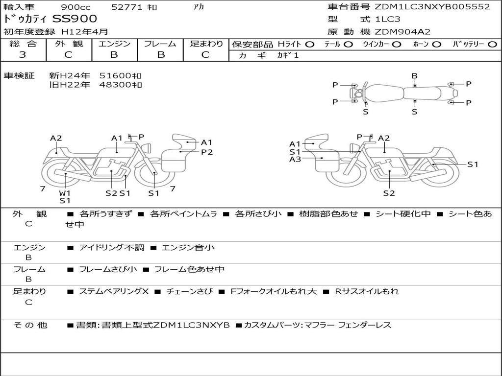 | Номер рамы / VIN | ZDM1LC3NXYB005552 |