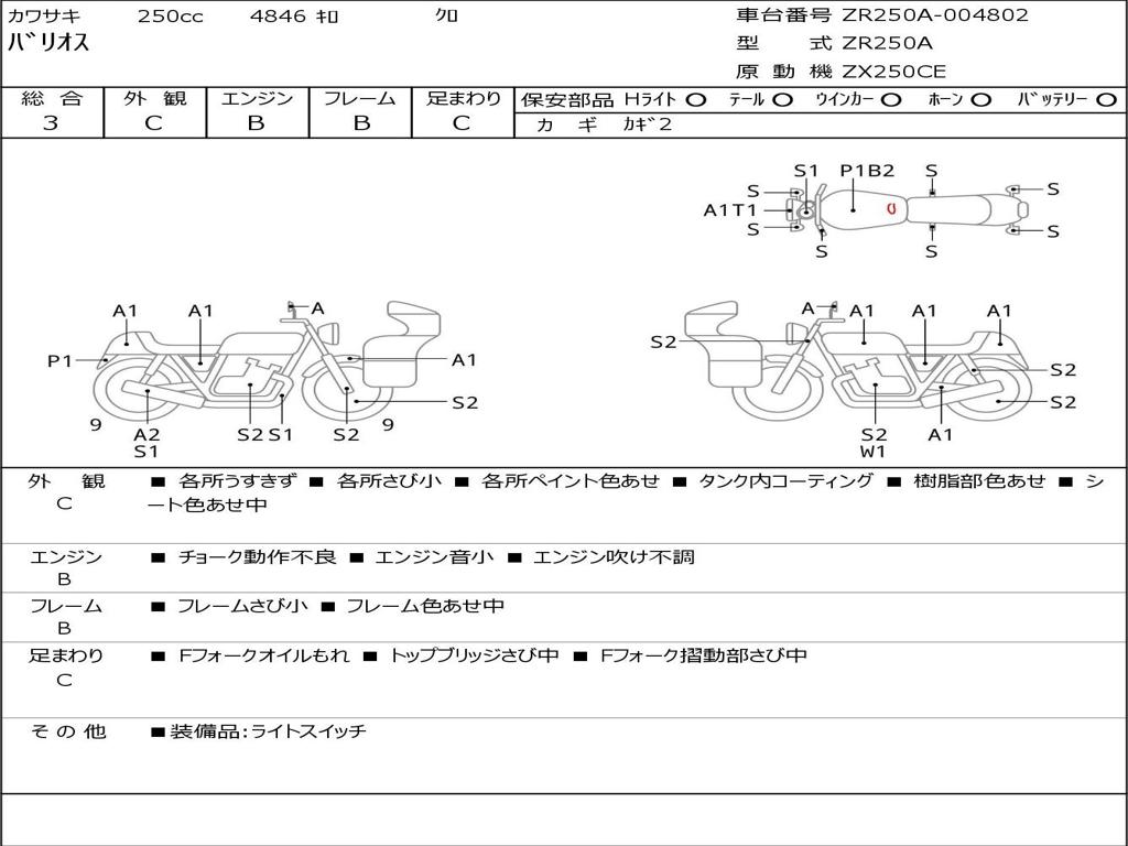 | Номер рамы / VIN | ZR250A-004802 |