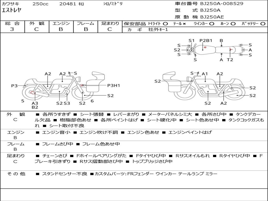| Номер рамы / VIN | BJ250A-008529 |