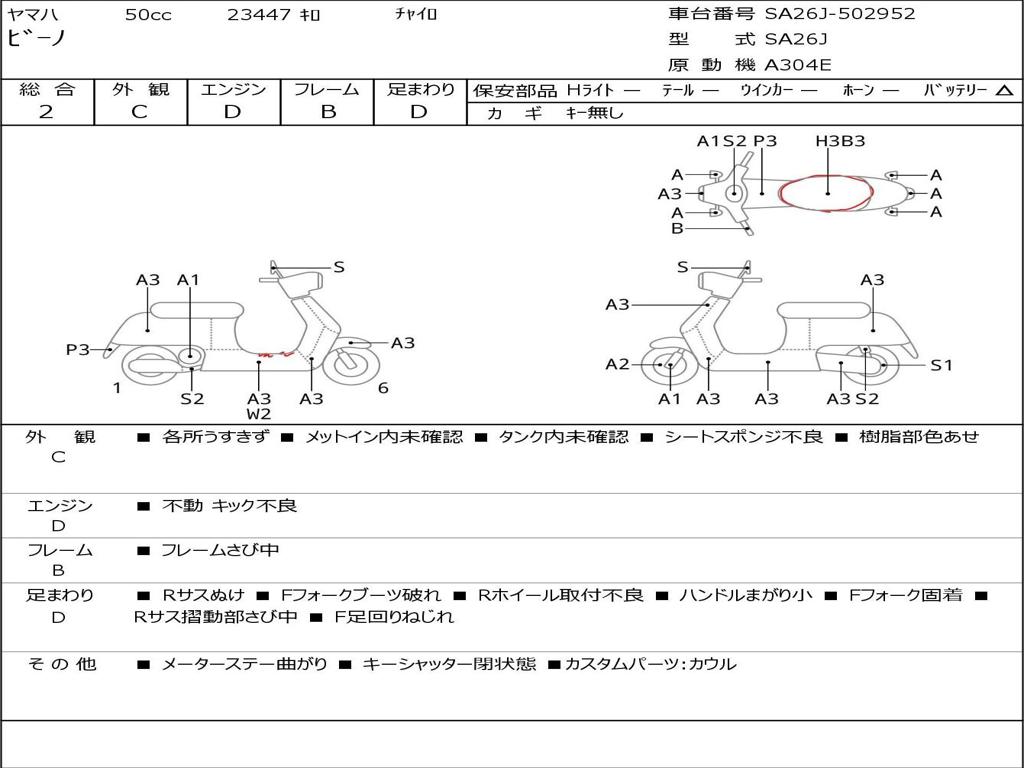 | Номер рамы / VIN | SA26J-502952 |