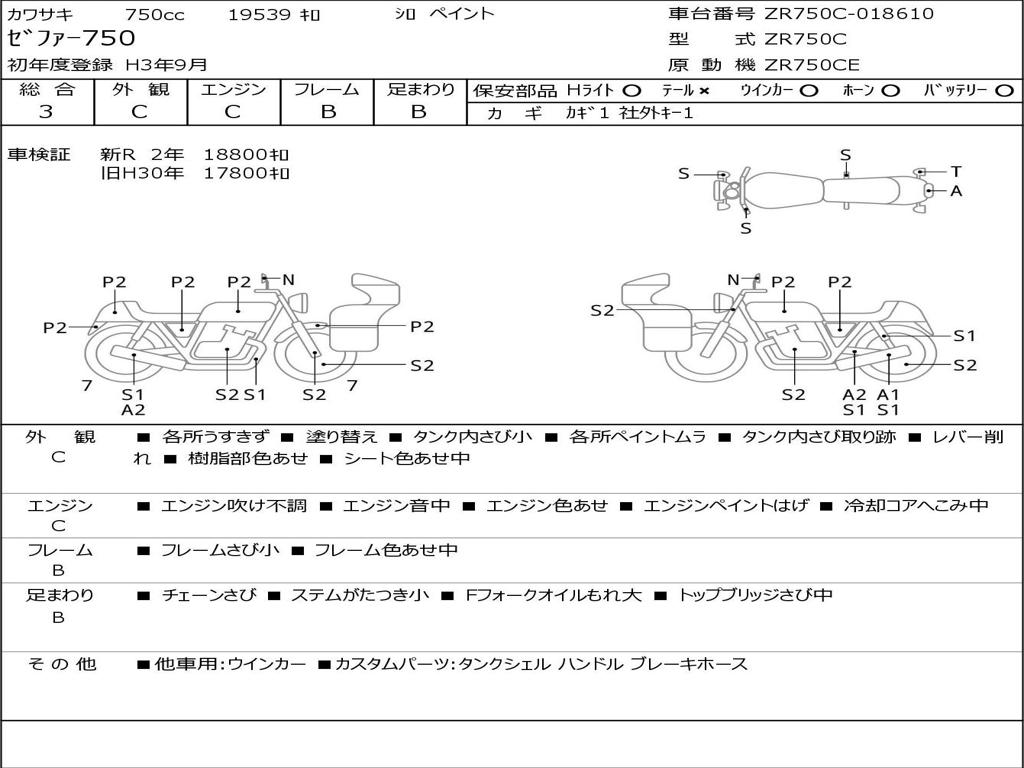 | Номер рамы / VIN | ZR750C-018610 |
