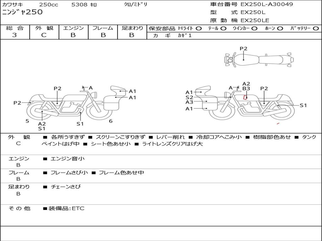 | Номер рамы / VIN | EX250L-A30049 |