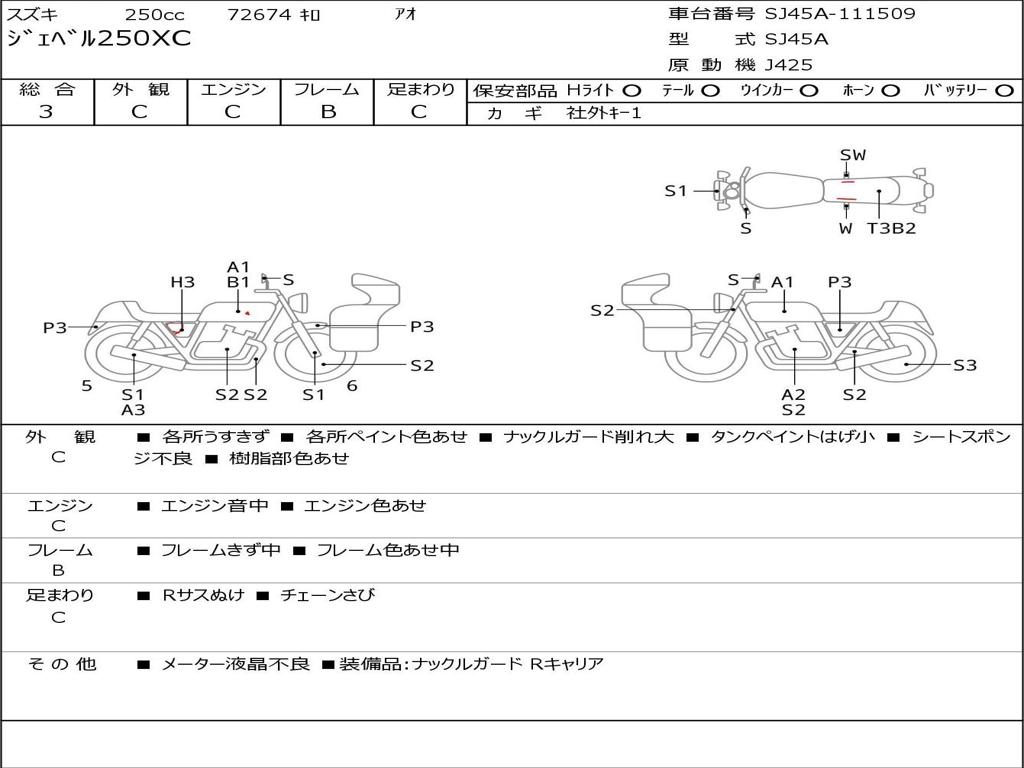 | Номер рамы / VIN | SJ45A-111509 |