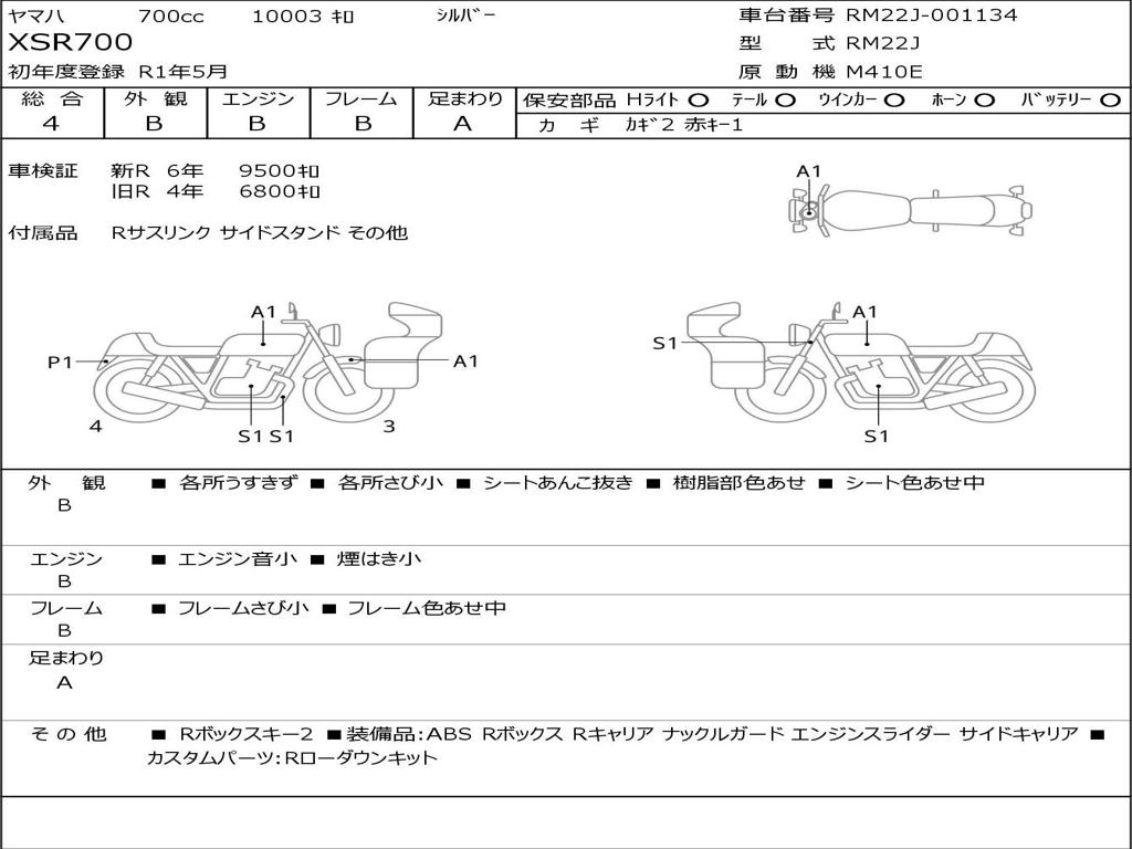 | Номер рамы / VIN | RM22J-001134 |