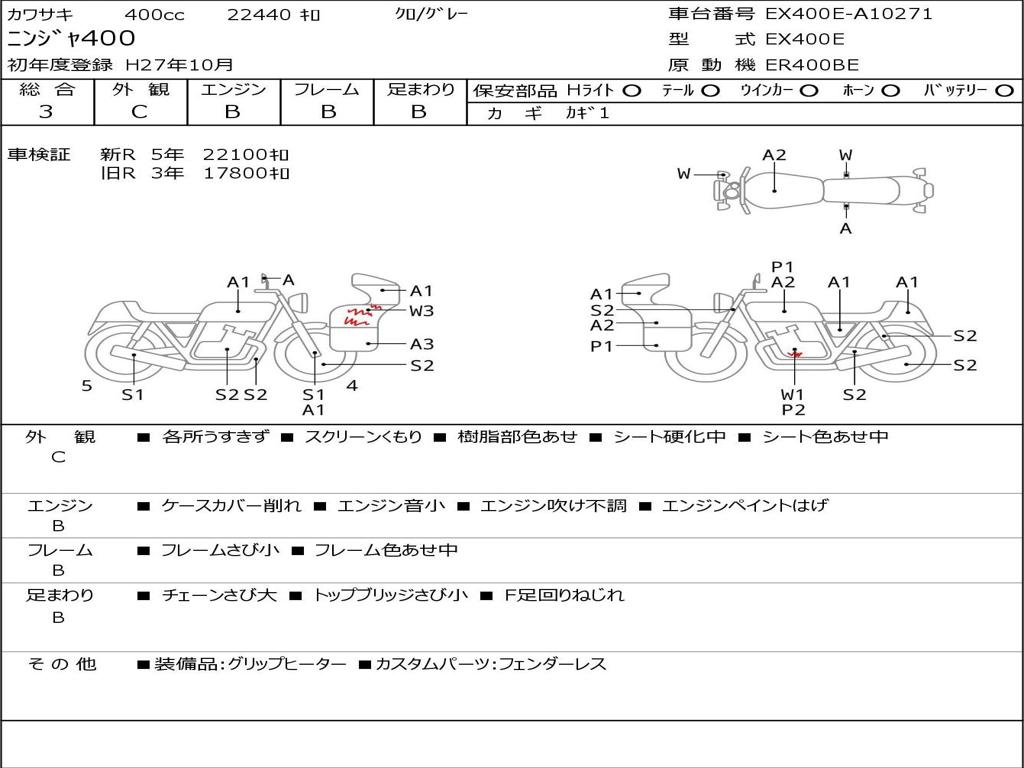 | Номер рамы / VIN | EX400E-A10271 |