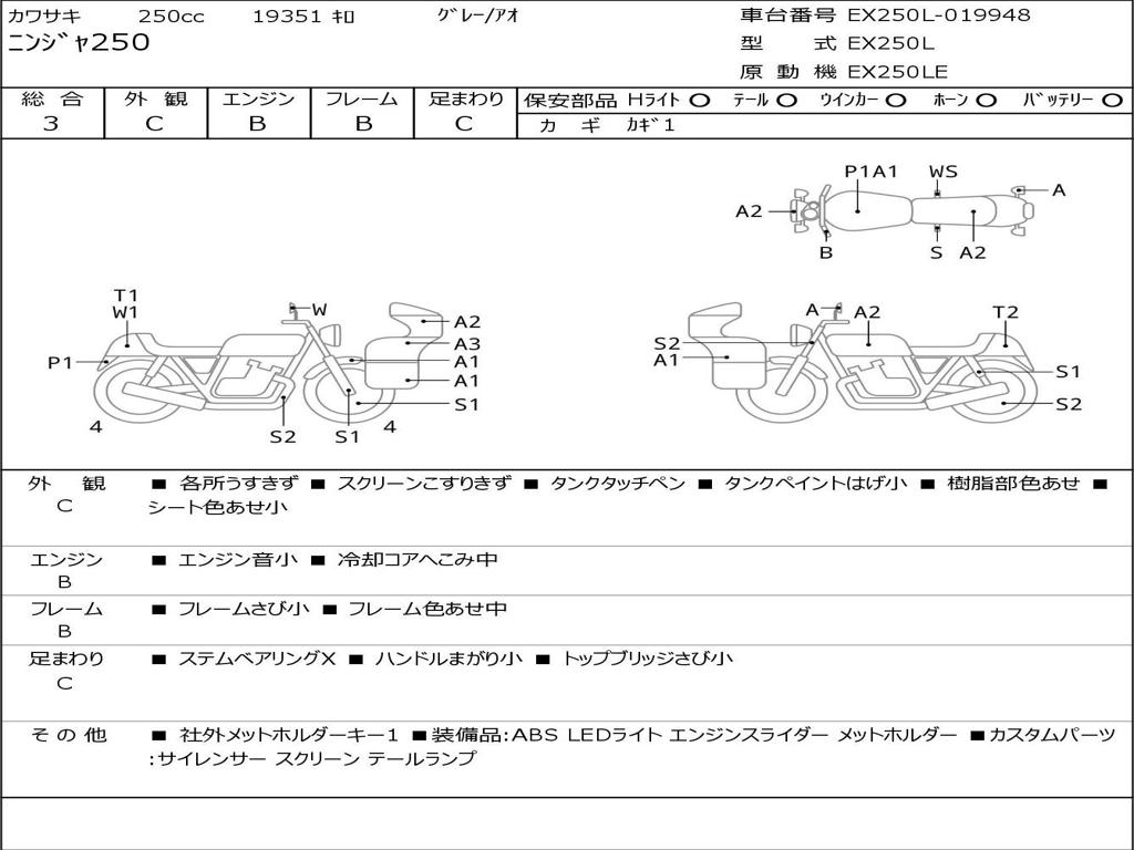 | Номер рамы / VIN | EX250L-019948 |