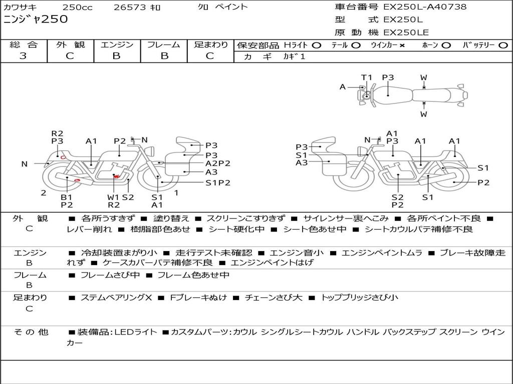 | Номер рамы / VIN | EX250L-A40738 |