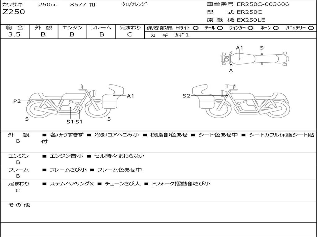 | Номер рамы / VIN | ER250C-003606 |
