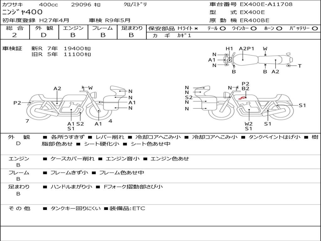 | Номер рамы / VIN | EX400E-A11708 |