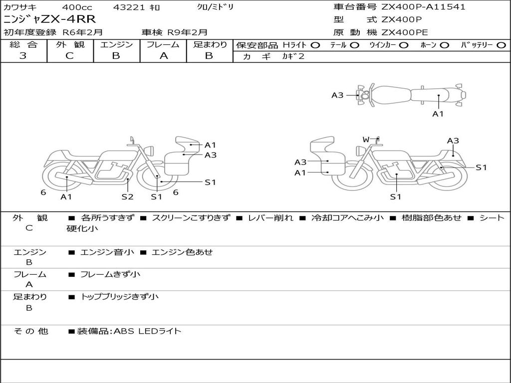| Номер рамы / VIN | ZX400P-A11541 |