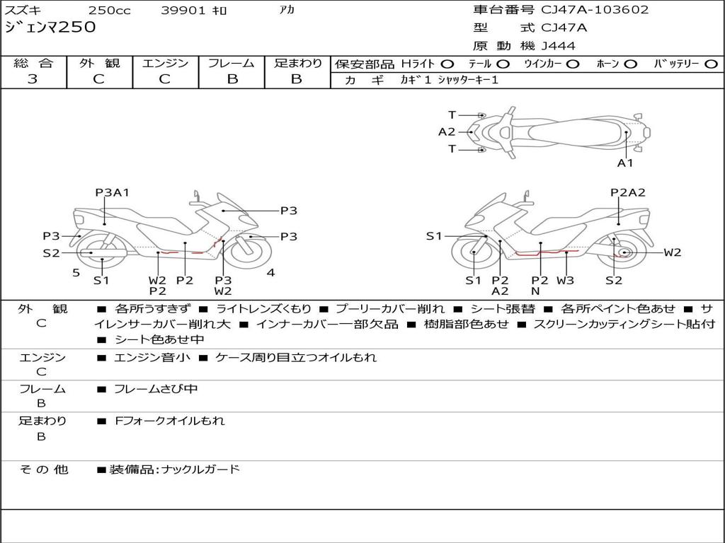 | Номер рамы / VIN | CJ47A-103602 |