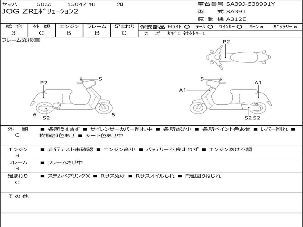 | Номер рамы / VIN | SA39J-538991Y |