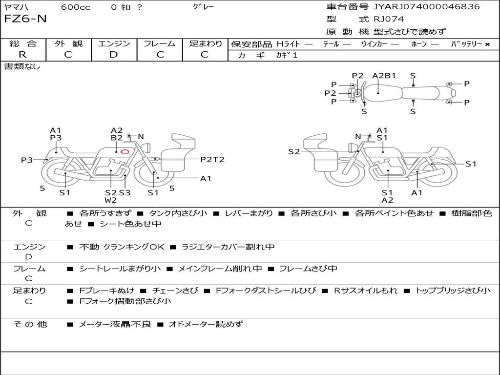 | Номер рамы / VIN | JYARJ074000046836 |