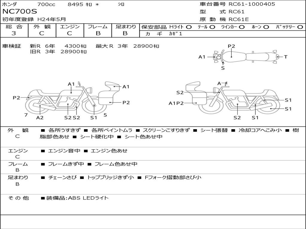 | Номер рамы / VIN | RC61-1000405 |