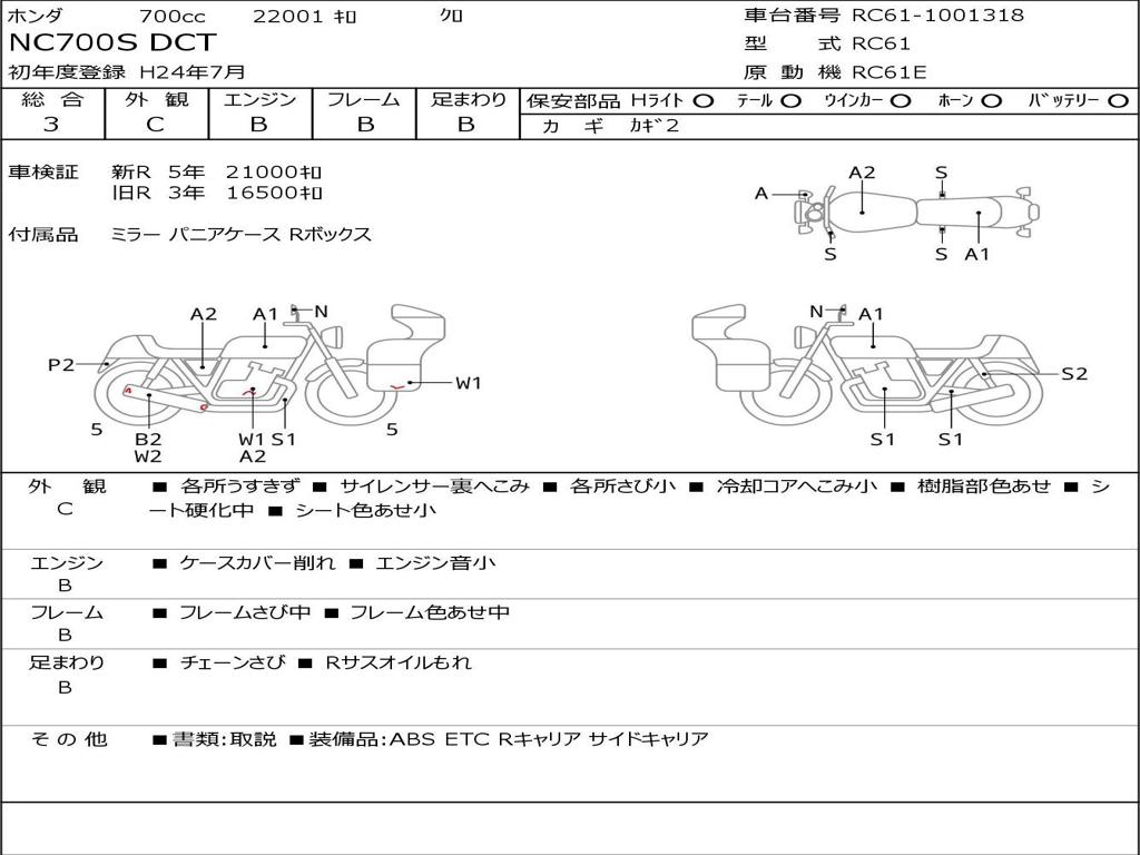 | Номер рамы / VIN | RC61-1001318 |