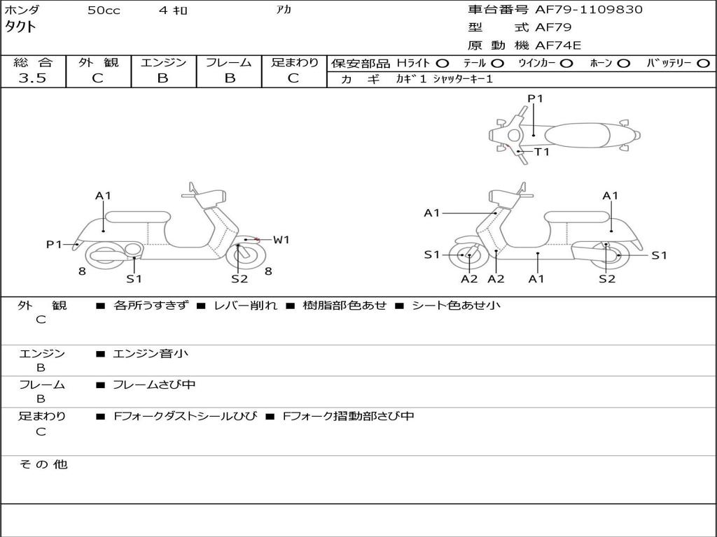 | Номер рамы / VIN | AF79-1109830 |