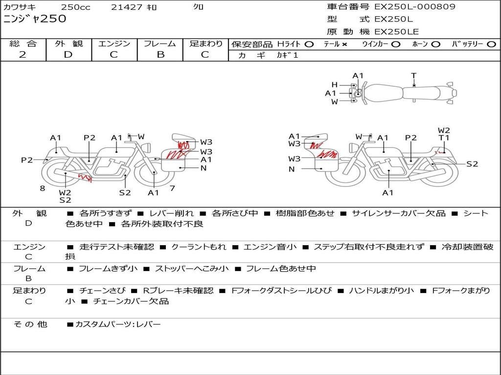 | Номер рамы / VIN | EX250L-000809 |