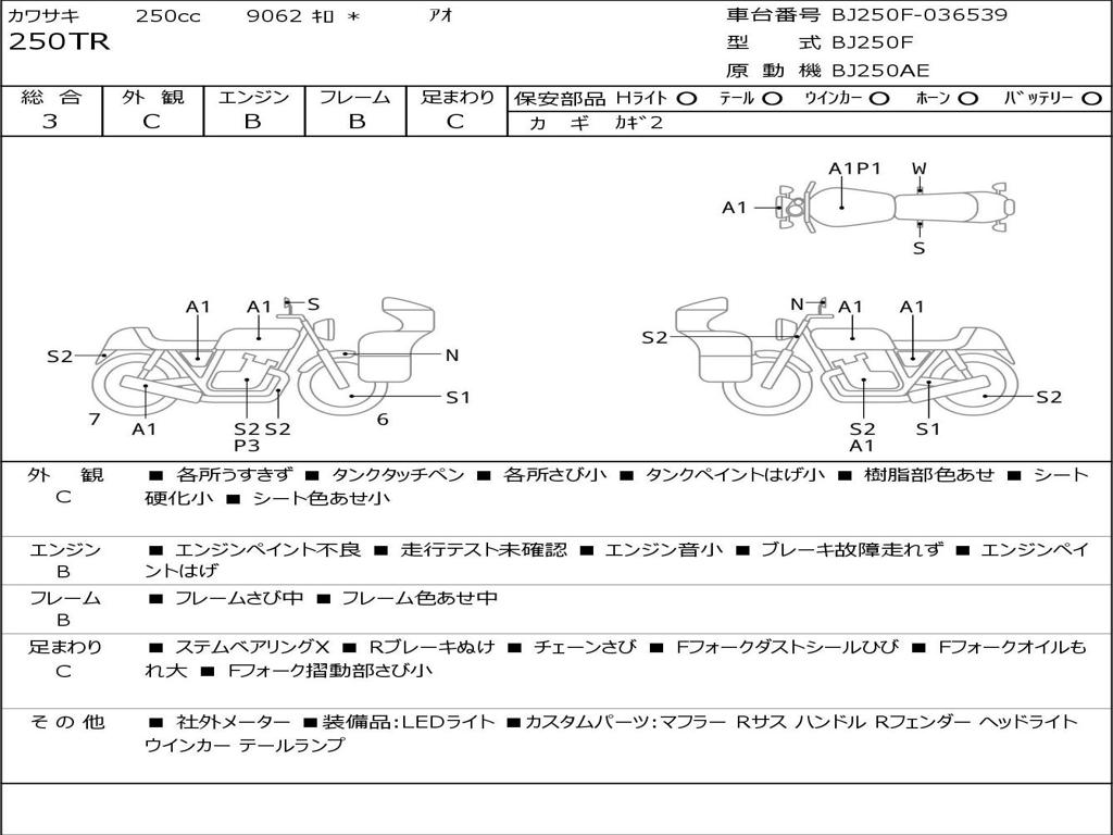 | Номер рамы / VIN | BJ250F-036539 |